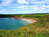 Mostly made up of shingle, whilst at low tide you will find a long stretch of golden sands. Look out for an abundance of birdlife and caves to explore. This isolated cove is perfect for those visitors seeking some solitude, you're likely to be the only ones there. It's best to take a picnic with you if you plan to spend the day on the beach. However, close to the car park, The Castle Inn at Manorbier offers real ales, lunches and evening meals. Beach Break Tea Rooms can also be found in this nearby village serving lunches, cakes and coffees.